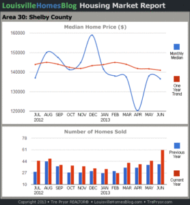 Please keep in mind that a far greater number of homes are sold in Jefferson County than all the rest. For example, from January to May in Jefferson County 1,227 homes are sold. During the same time in Spencer County, that number is just 32. The larger the sample size, the more reliable the findings.