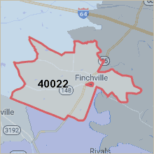 Located in Shelby County, to the east of Louisville, 40022 has an approximate 6 mile radius in size and is centered on the city of Finchville, Kentucky. Finchville is really more the size of a town.