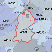 Located primarily in Henry County, this ZIP measures approximately 6 miles in radius. Located just south of I71, the largest city is Smithfield just a couple of miles southeast of La Grange, Kentucky.