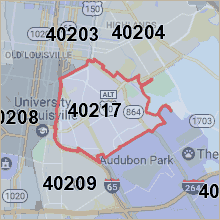 Just a single mile in radius, this ZIP code is east of I65 in the very center of Jefferson County. The largest city inside is Parkway Village.